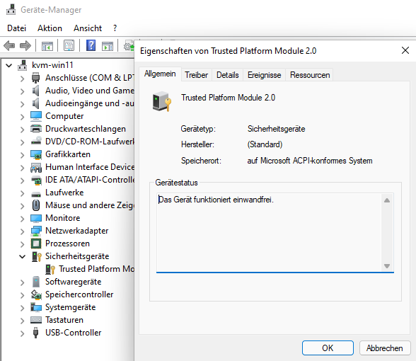 Unter Windows ist das TPM2 Modul nun zu sehen.